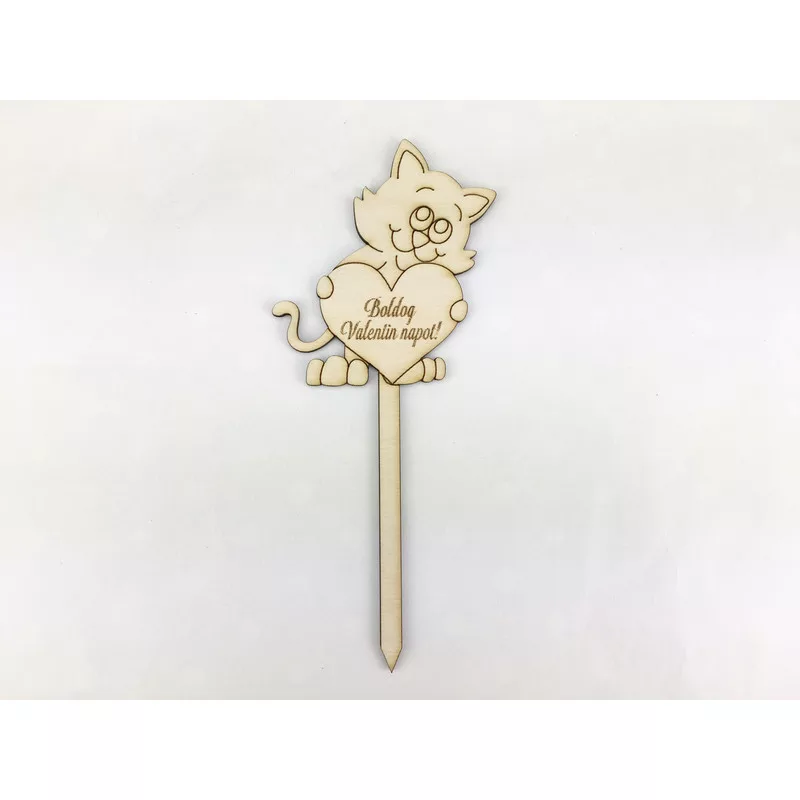 Natúr fa - Beszúrós cica "Boldog Valentin napot" 16,5cm