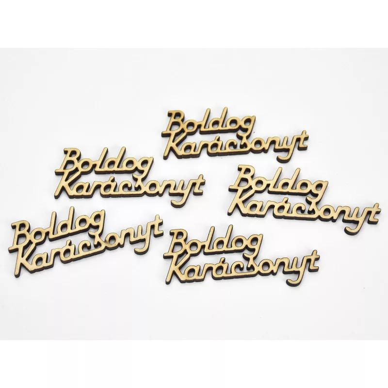Natúr fa - "Boldog Karácsonyt" felirat 3x6,7cm 5db/csomag