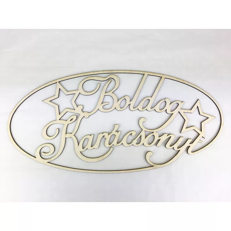 Natúr fa - "Boldog Karácsonyt" ovál nagy 48x23cm