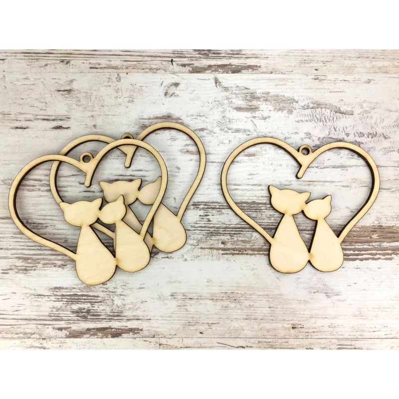 Natúr fa - Cicák szívben 10cm 3db/csomag