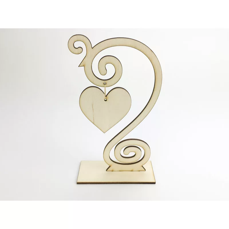 Natúr fa - Díszes szívtartó talpas 17cm
