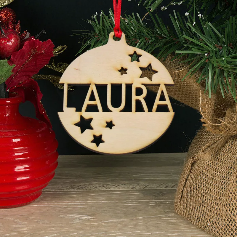 Natúr fa - Egyedi névre szóló karácsonyfa dísz