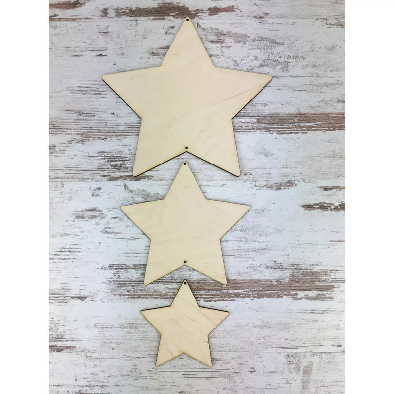Natúr fa - Felfűzhető csillagok 20-15-10cm 3db/csomag