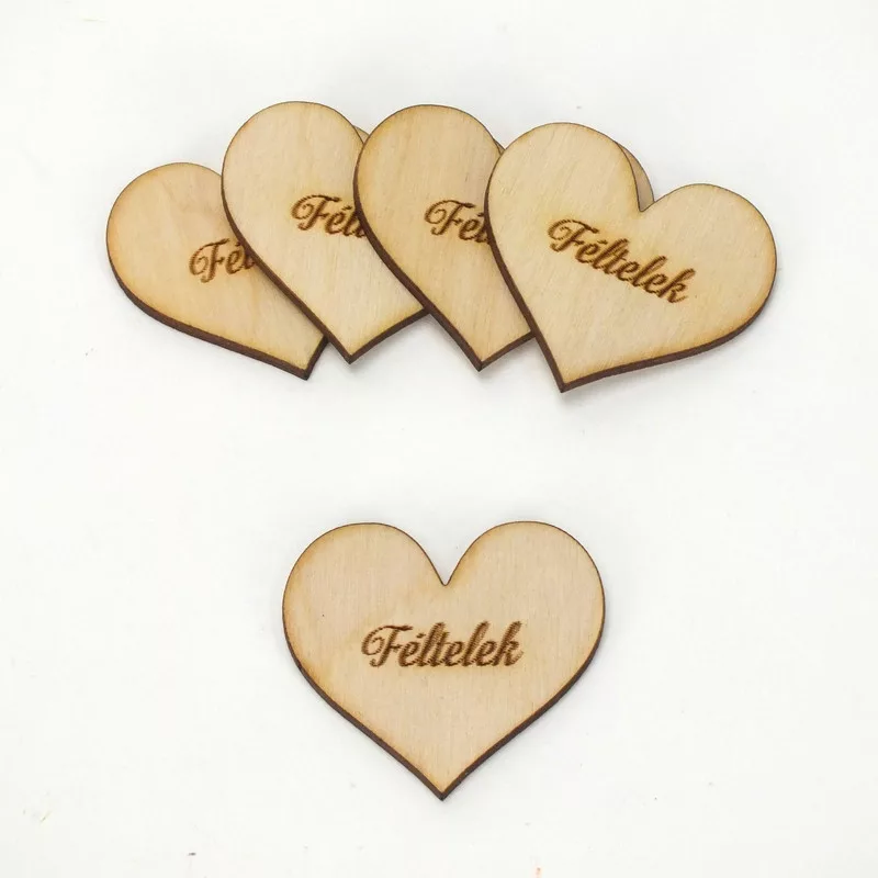 Natúr fa - " Féltelek" gravírozott szív 4x4,5cm 5db/csomag