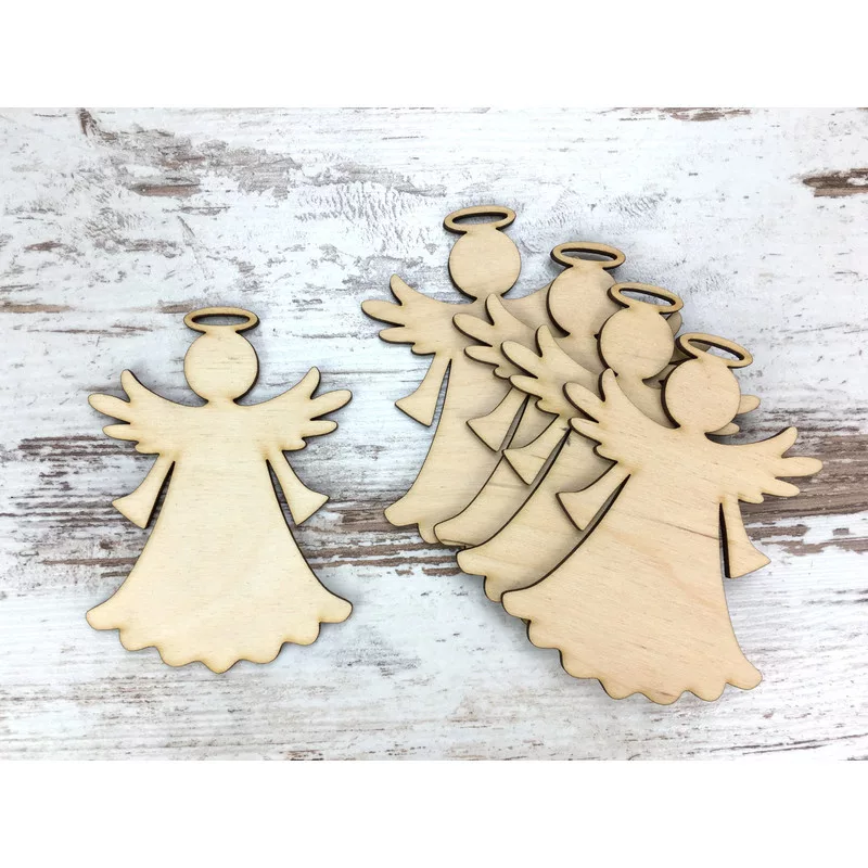 Natúr fa - Fodros ruhás angyalka 10cm 5db/csomag