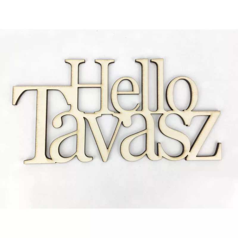 Natúr fa - "Hello Tavasz" felirat koszorúra 10x20cm