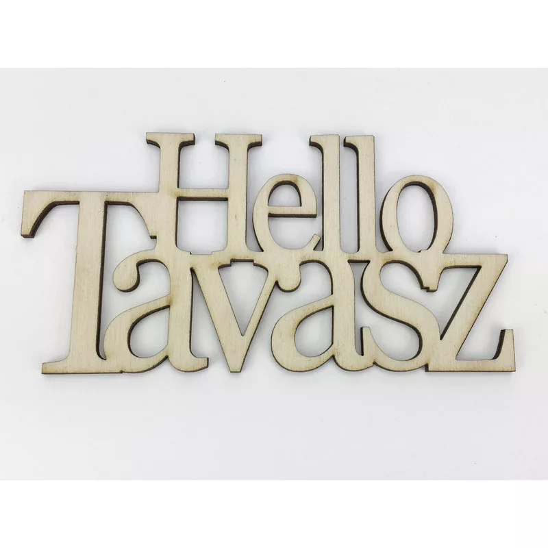 Natúr fa - "Hello Tavasz" felirat koszorúra 7x14cm