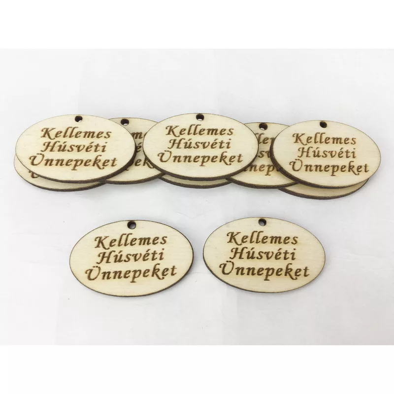 Natúr fa - "Kellemes Húsvéti Ünnepeket" ovál tábla 2,5x4cm 10db/csomag