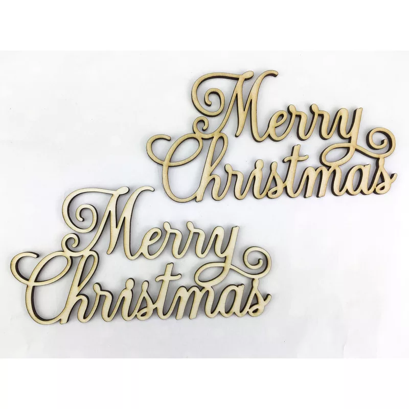 Natúr fa - "Merry Christmas" díszes felirat 2db/csomag