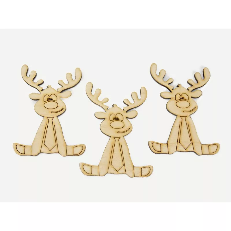 Aranyos natúr, lézervágott ülő rénszarvasok nyakkendővel. 3db/csomag