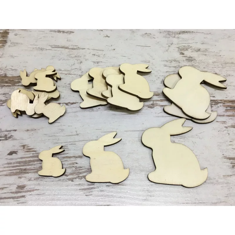 Saját gyártású fa termékeink számos lehetőséget kínálnak. Festheted, dekupázsolhatod, ragaszthatod, díszítheted csipkével, verettel, szalaggal, de natúr állapotban is tökéletes dekoráció. Nyuszik mérete: 3, 5 és 7cm, vastagság:3mm