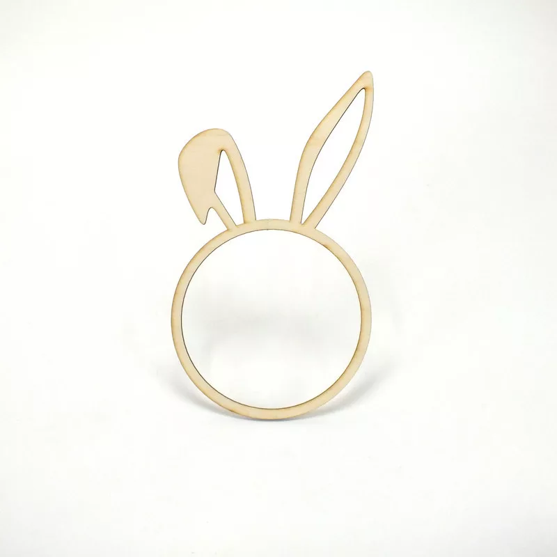 Nyuszifüles díszíthető fa karika, festhető, dekorálható alap.