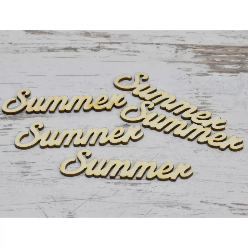 Natúr fa - "Summer" felirat 9,5cm 5db/csomag