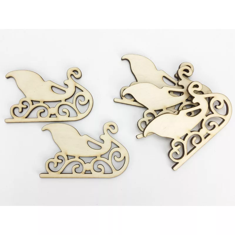 Natúr fa - Szánkó díszes 8cm 5db/csomag