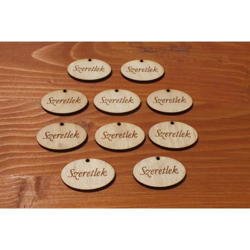 Natúr fa - "Szeretlek" ovál tábla 2,5x4cm 10db/csomag
