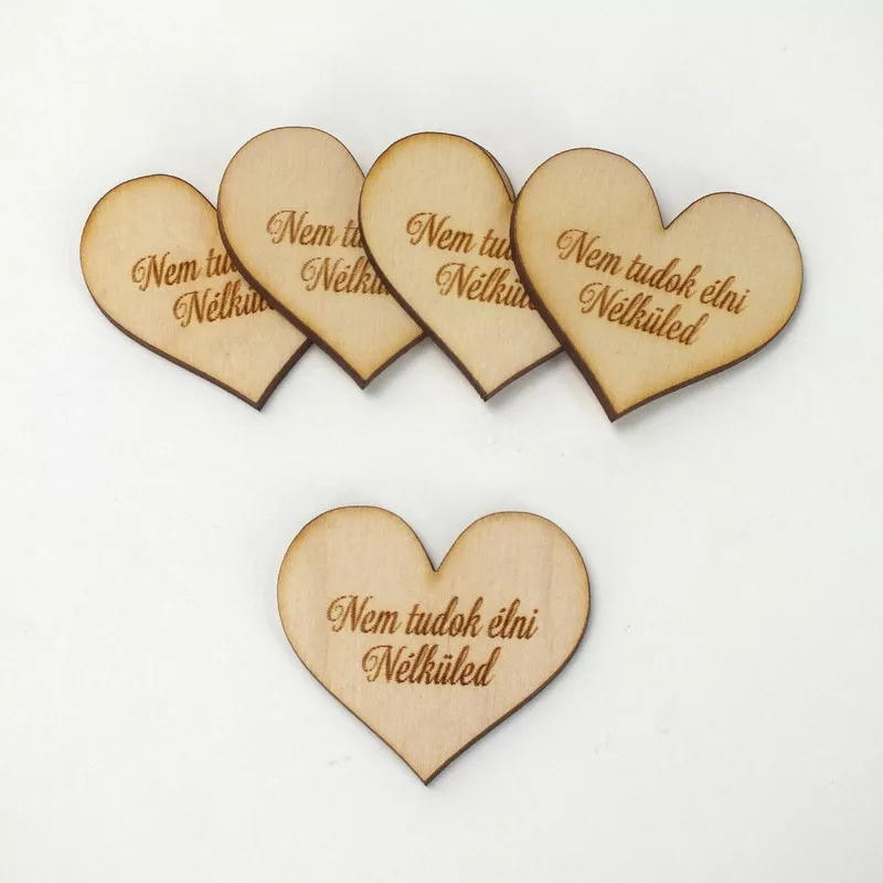 Natúr fa - Szív "Nem tudok élni Nélküled" 4cm 5db/cs