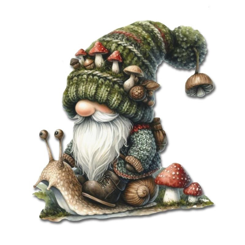 Nyomtatott dekorkarton - Csigán ülő manó 15cm