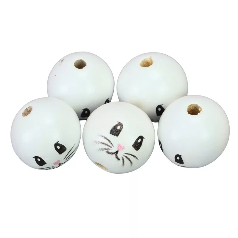 Nyomtatott fehér fagolyó nyuszi fiú arccal 30mm 5db/csomag