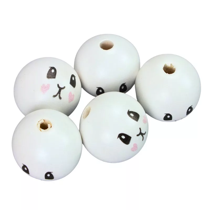 Nyomtatott fehér fagolyó nyuszi lány arccal 30mm 5db/csomag
