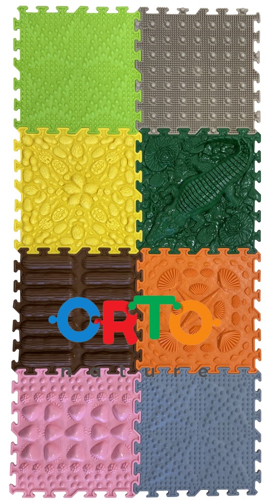 Az ORTONATURE masszázsszőnyegei prémium minőségű PVC (polivinil-klorid) BPA- és ftalátmentes anyagból készülnek, amely tartós, könnyen mosható és hosszú évekig szolgál. A szőnyegek textúrájának és színeinek széles választéka fejleszti a képzeletet, javítja a vérkeringést, elősegíti a lapos láb korrekcióját, segít eltávolítani a lábak ödémáit és fejleszti a vesztibuláris rendszert.