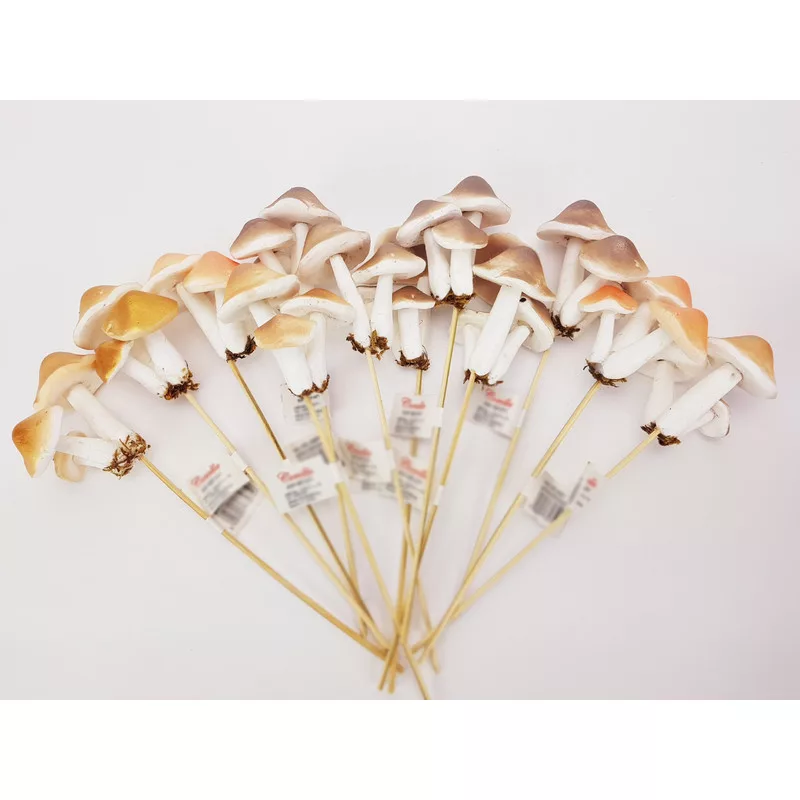 12db pálcás gombák, fényes festéssel - többféle színben. Látványos dekorációs elem húsvétra, tavaszi/nyári készítményekhez. Előnye, hogy a pálcikának köszönhetően nem kell ragasztani így később könnyen felhasználható egy másik készítményhez is.