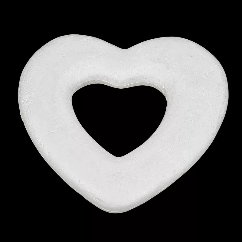 Polisztirol szívecske ragasztható felületű: pl.: habrózsával kombinálva szív rózsa készíthető