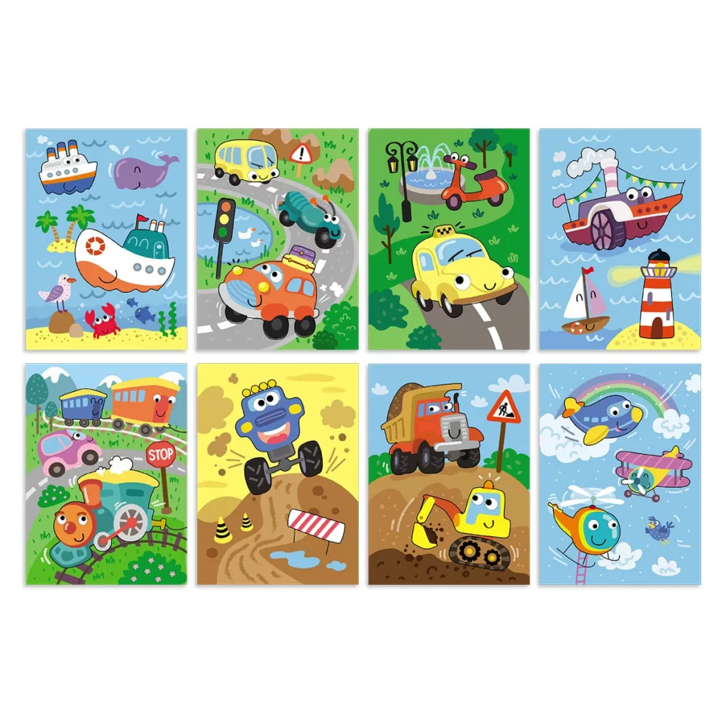 • Töltsd meg a tollat ​​vízzel, kezdj el festeni a könyv fehér lapjaira, és figyeld, ahogy varázsütésre 8 színes kép tárul elénk szállítóeszközökről!