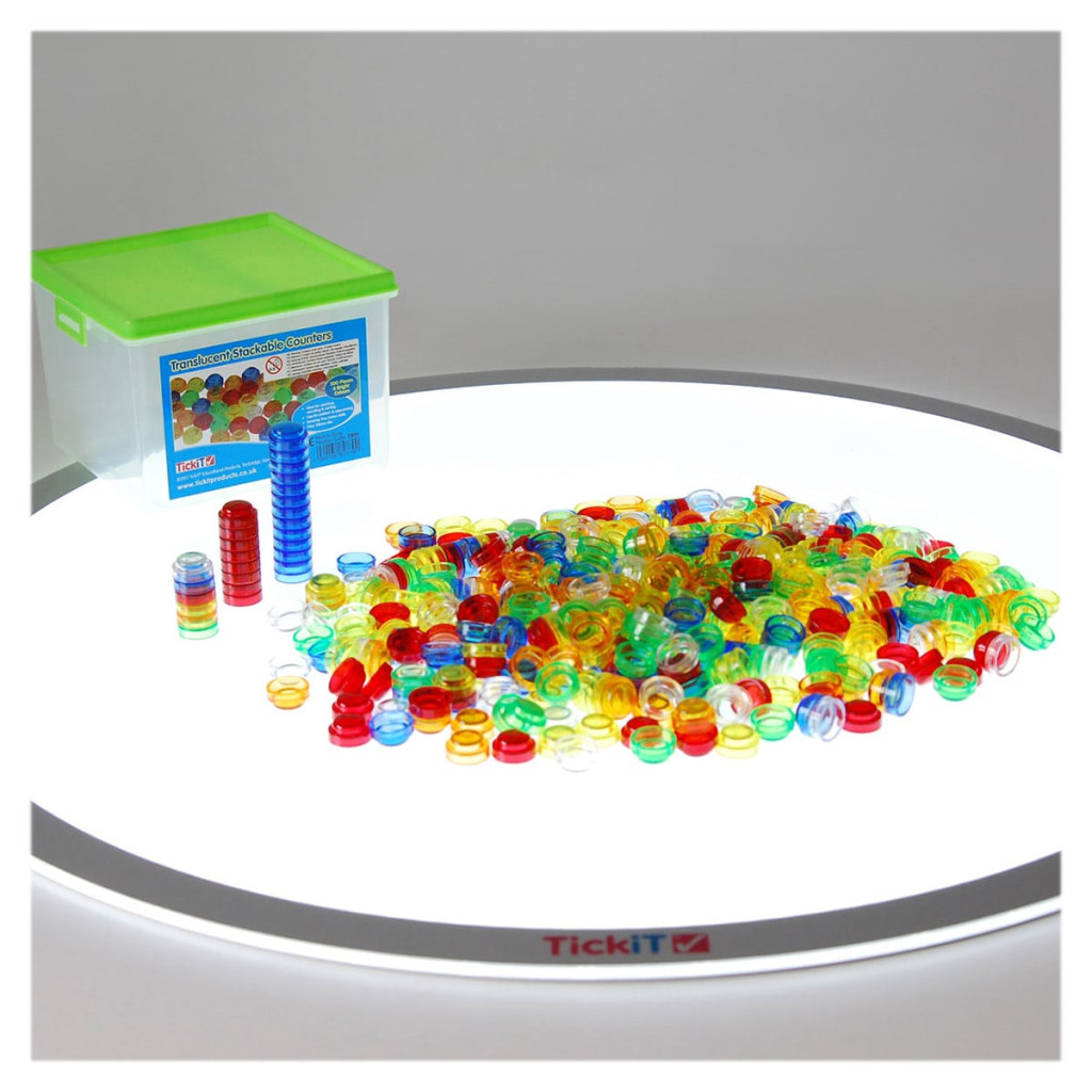 • Ideálisak világító asztalokon való használatra, ahol a hatás még lenyűgözőbb, ahogy a fény áthalad a színes akril korongokon.