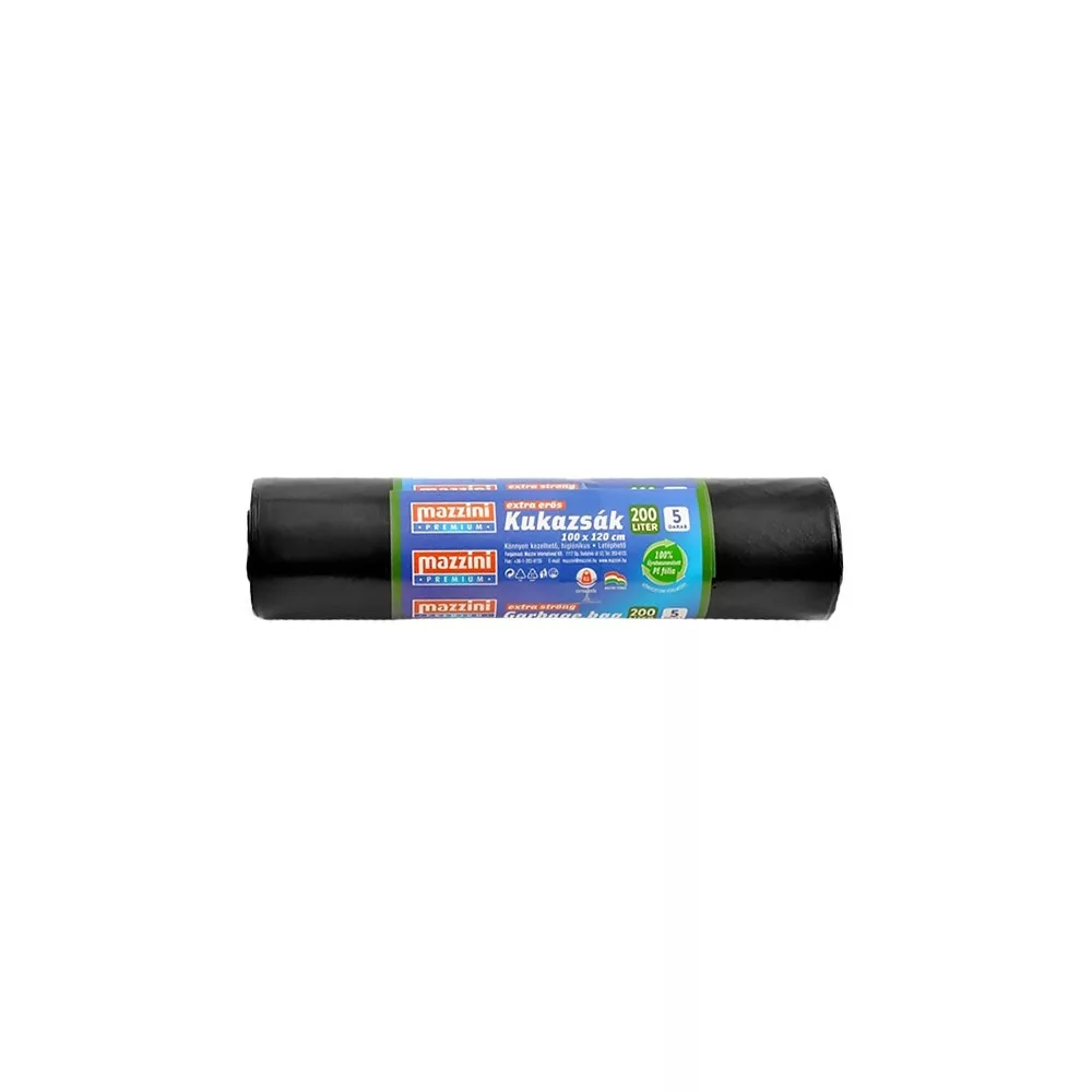 Szemeteszsák 200 liter 100 x 120 cm 40 mikron 5 db/tekercs Mazzini_fekete