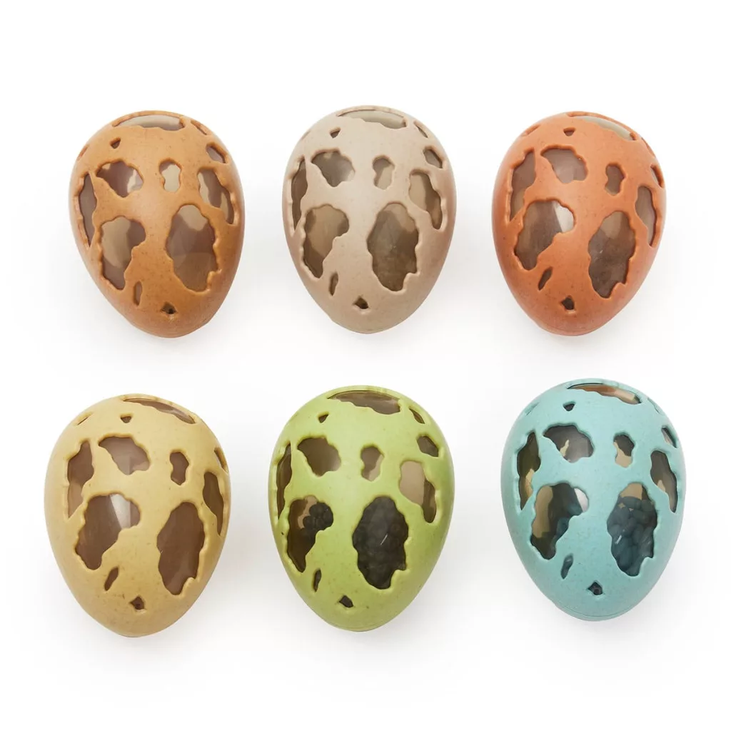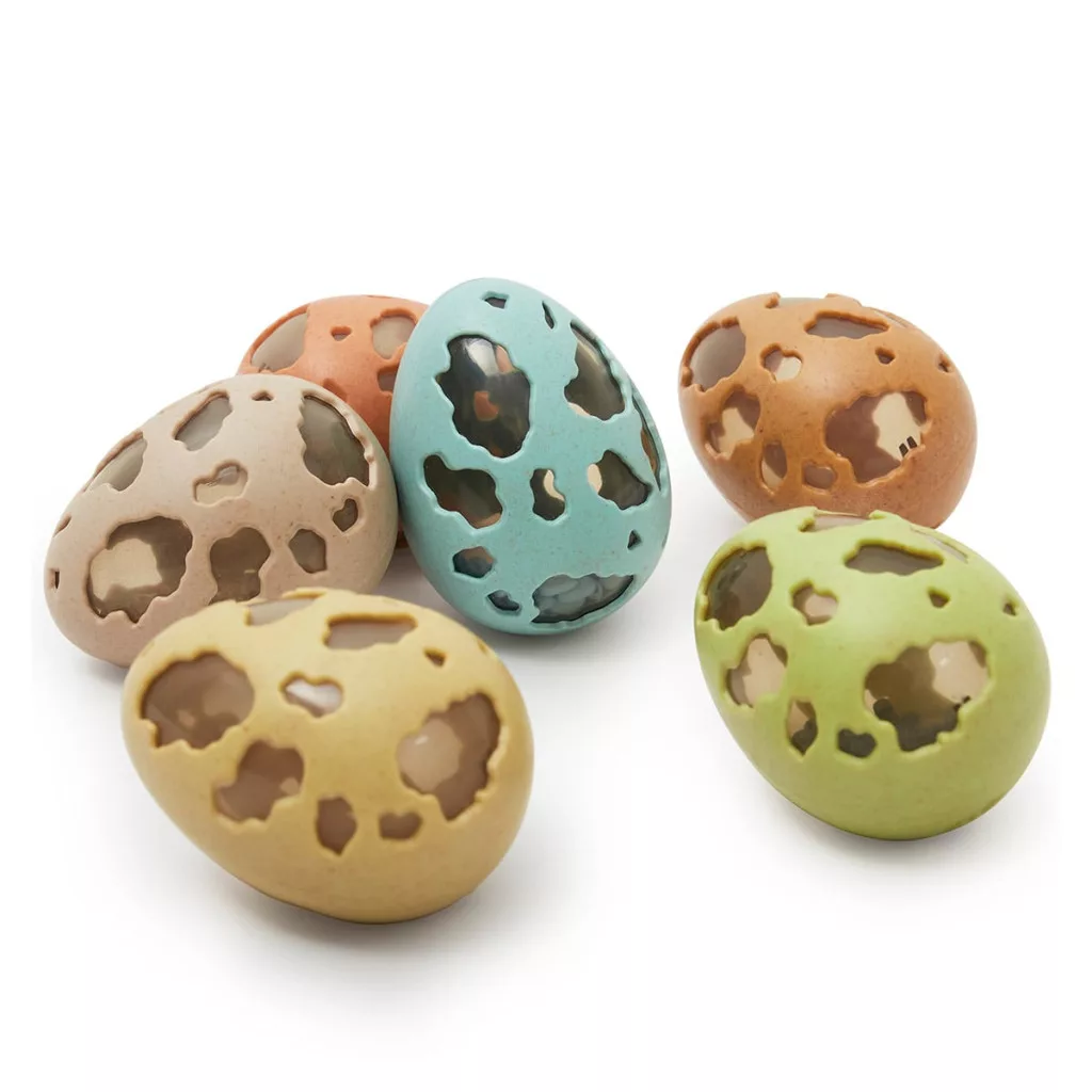 • Minden tojás természetes színekre van festve, más anyaggal van töltve, különböző súlyú, és egyedi hangokat keltenek, amelyeket a kisgyermekek felfedezhetnek.