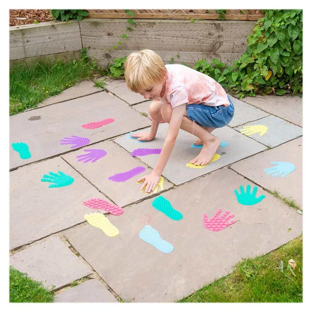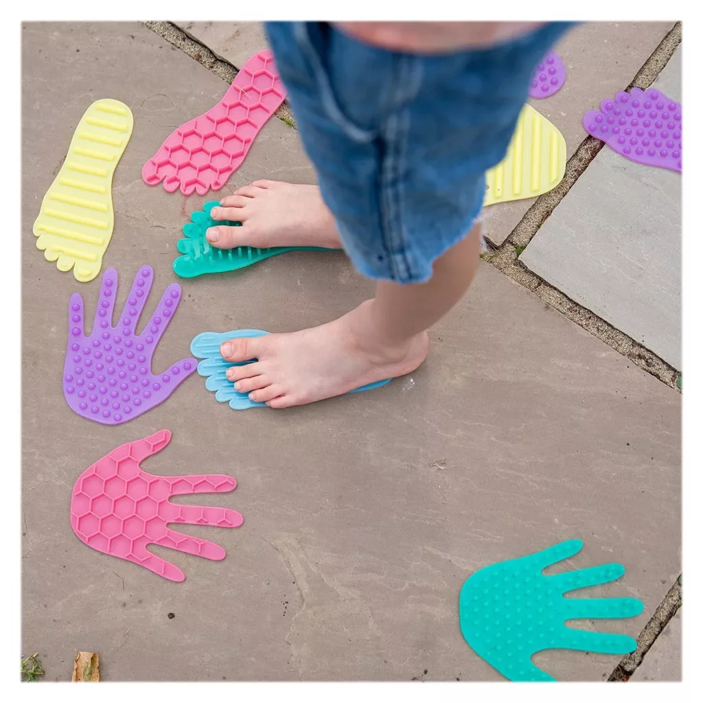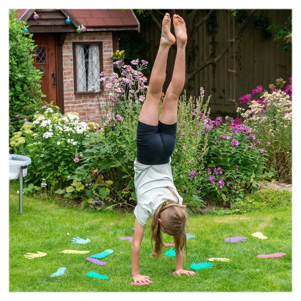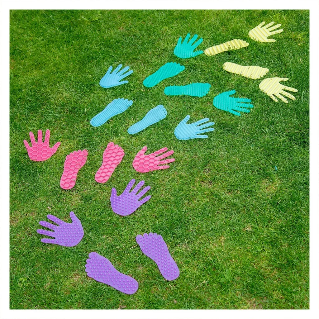 A kéz- és lábformák számos játékhoz használhatók: például egyensúlypályák, mozgásos feladatok vagy „kövesd a nyomot” játékok kialakítására. A készlet kiváló eszköz csoportos játékhoz is, ahol a gyerekek együtt mozoghatnak és tanulhatnak.