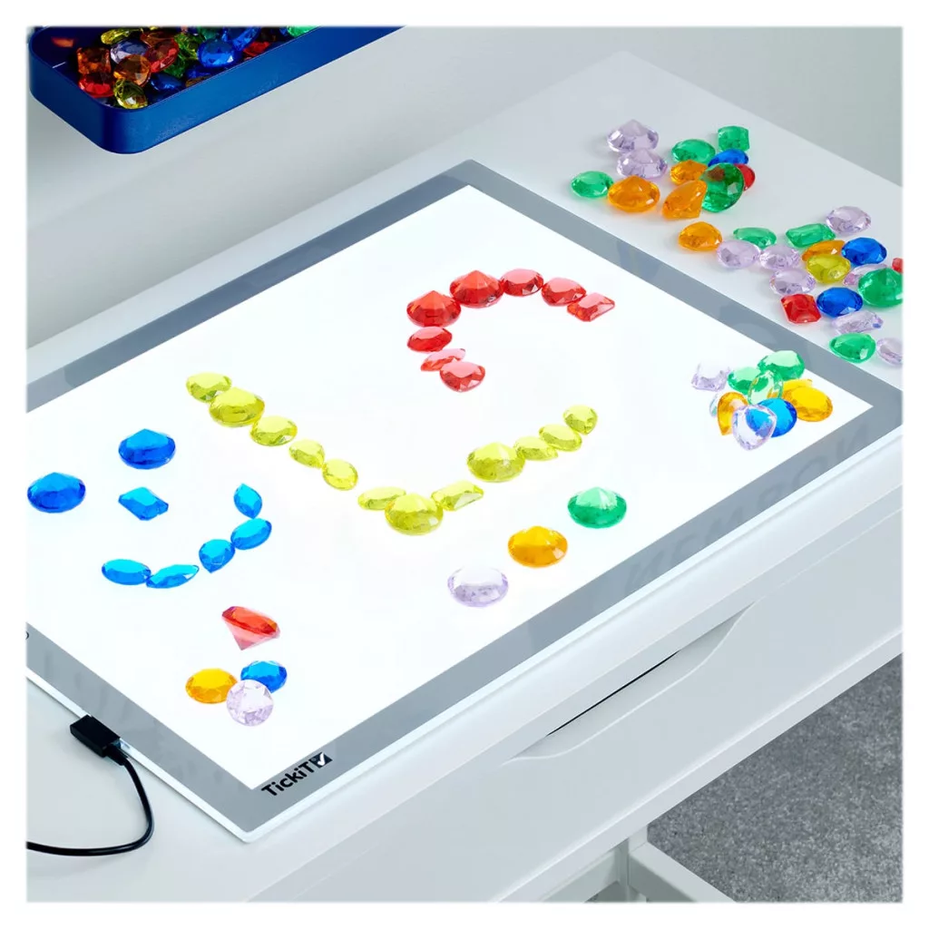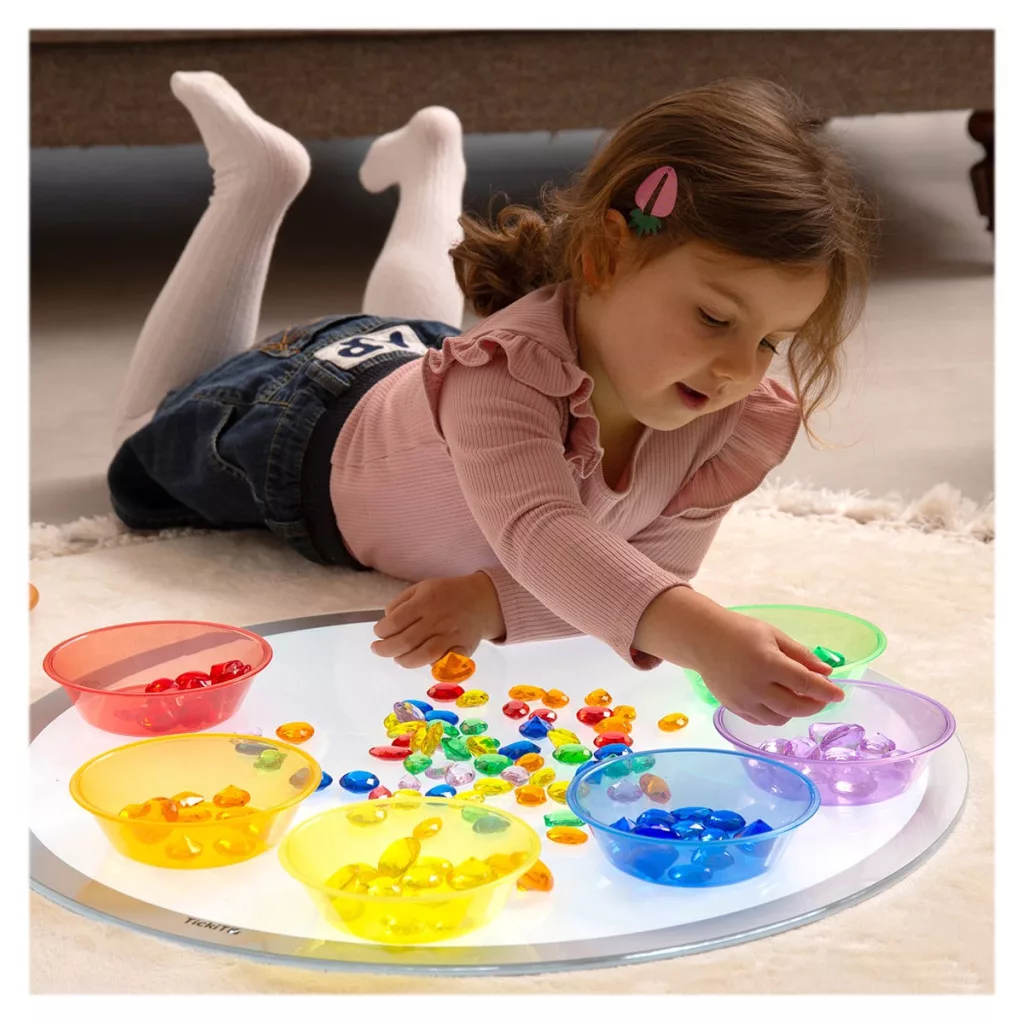 • A TickiT színes, áttetsző drágakő készlete lehetőséget ad a gyerekeknek elképzelni egy fantázia világot, melyben drágakövekkel rendelkeznek.