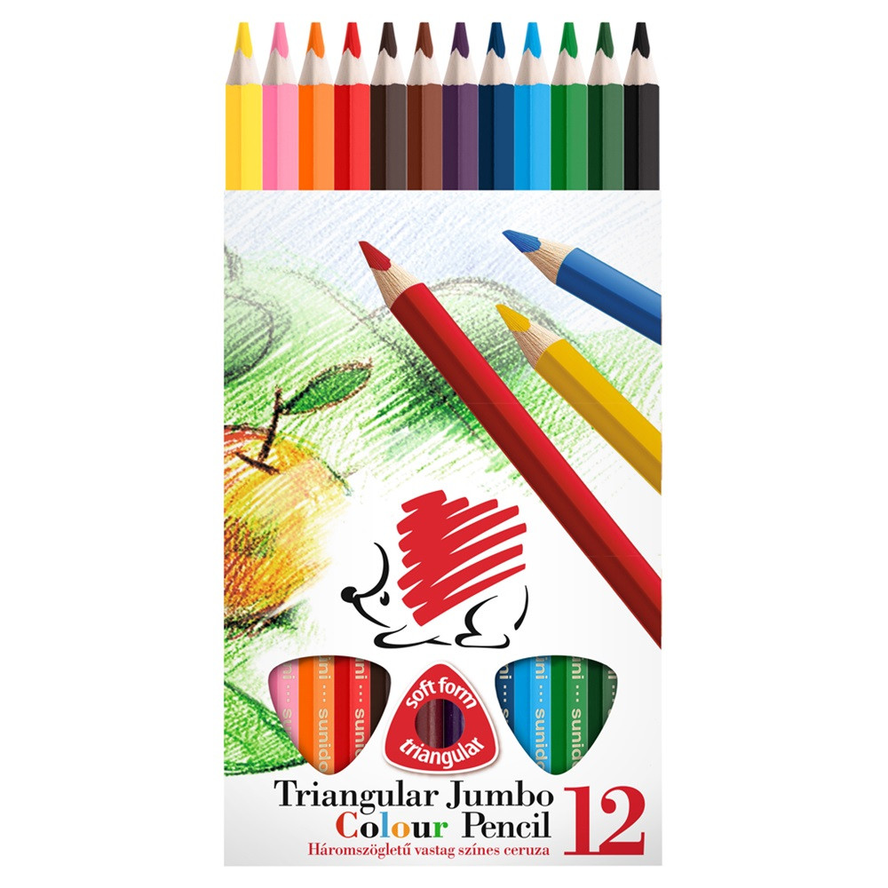 Színes ceruza készlet, háromszögletű vastag Süni Ico 12 klf. szín