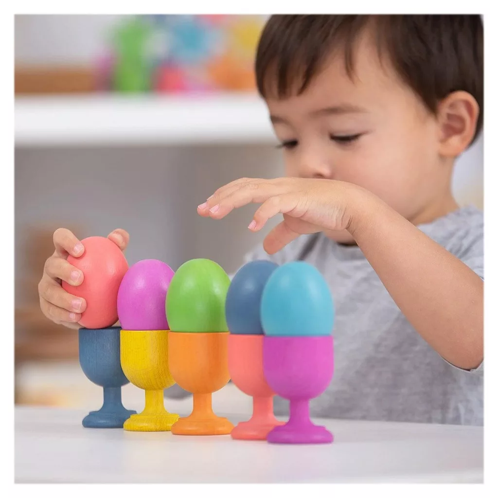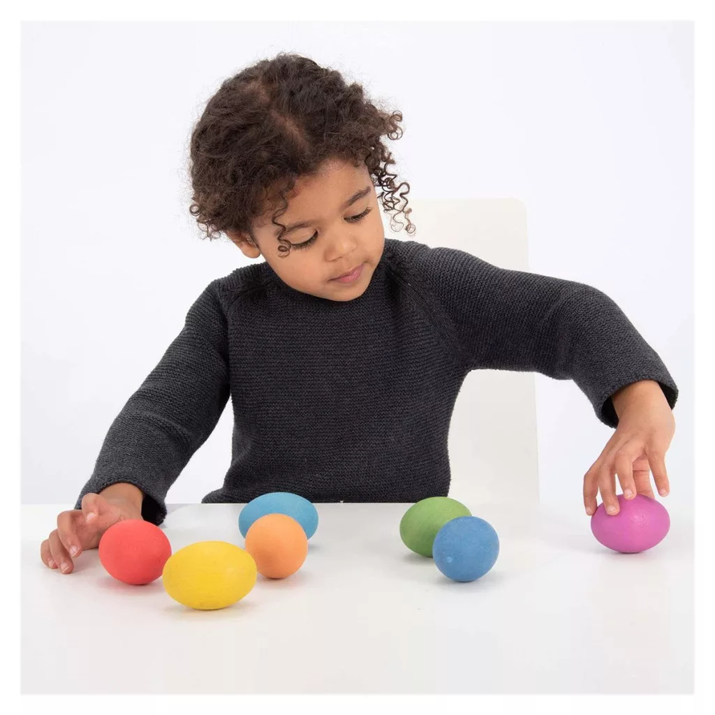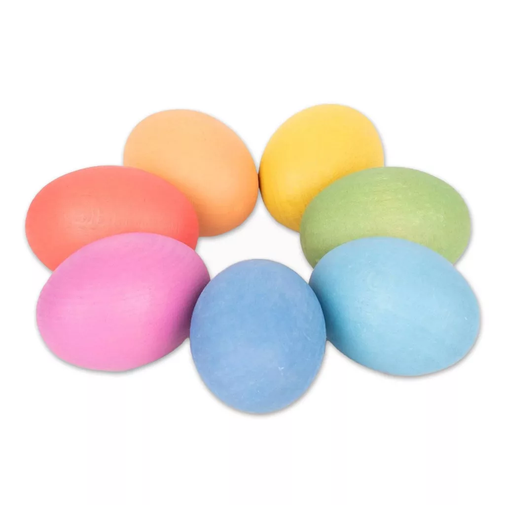 • A készlet 7 darab tömör bükkfából készült tojást tartalmaz a szivárvány hét színében.