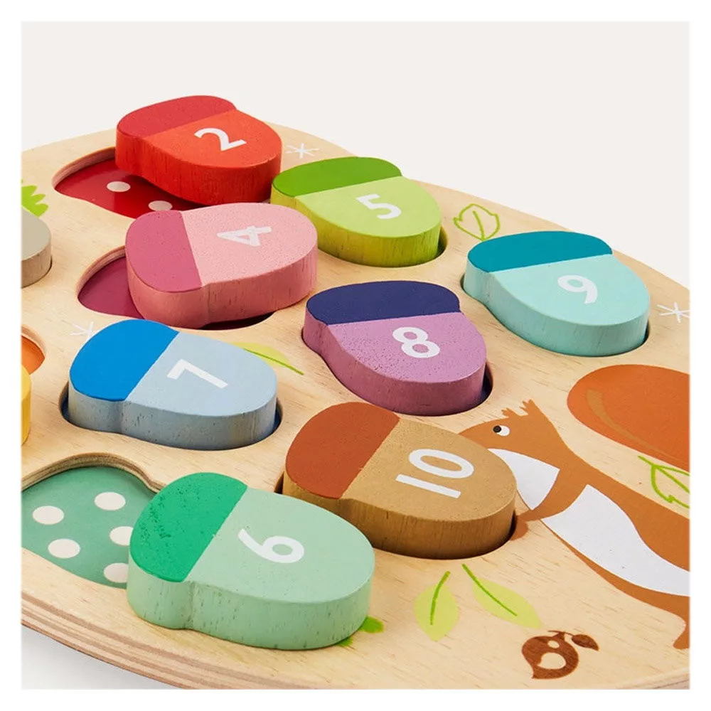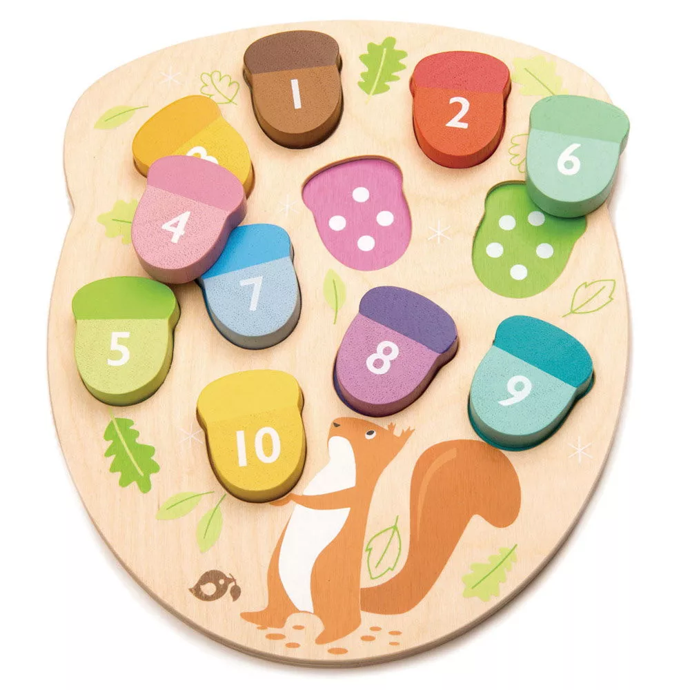 • Tanulás és játék egyben – mókus módra! Vidám fa fejlesztőjáték, ahol a gyerekek 10 színes makkot párosíthatnak a játéktáblán lévő színekhez és pöttyökhöz.
