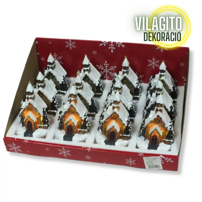 Színes világítós templom kicsi 12db/dob
