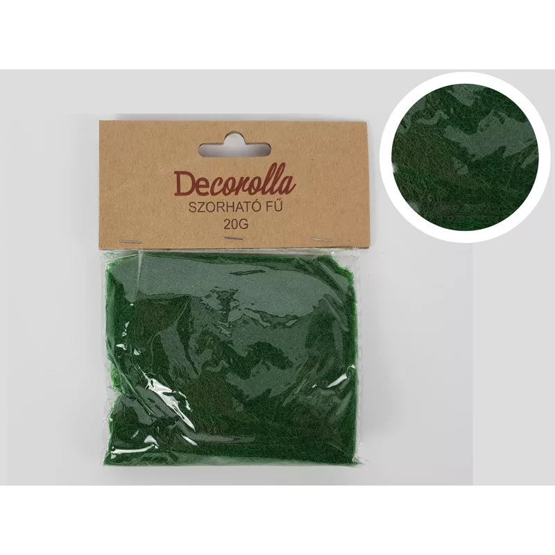A sötétzöld szórható fű makettekhez, kirakatokhoz szánt füves felület kialakítására való kiegészítő. Ragasztóval kombinálható.