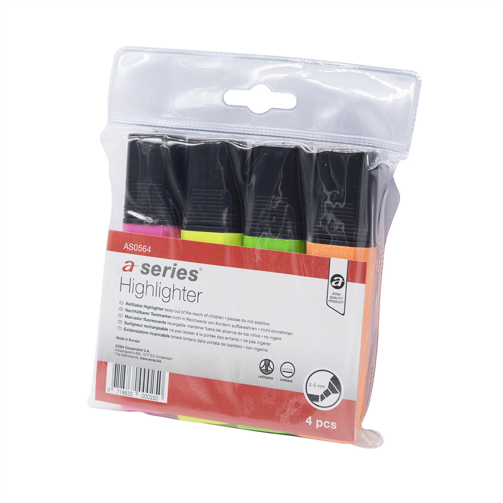 Szövegkiemelő készlet 1-5mm, vágott hegyű, lapos test, A-Series 4 klf. szín