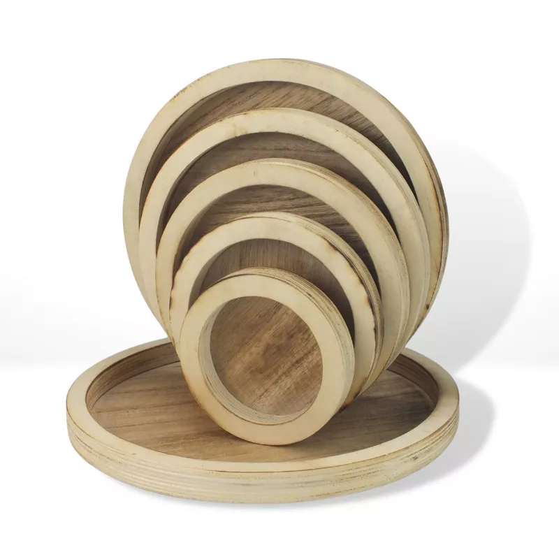 Tálca szettünkkel egyszerűen és stílusosan tálalhatsz és rendezheted el az ételeket és az apróságokat. Ez a fából készült 6 darabos kerek tálca szett egyedi és praktikus megoldást nyújt a konyhádban és a rendezvényeken.