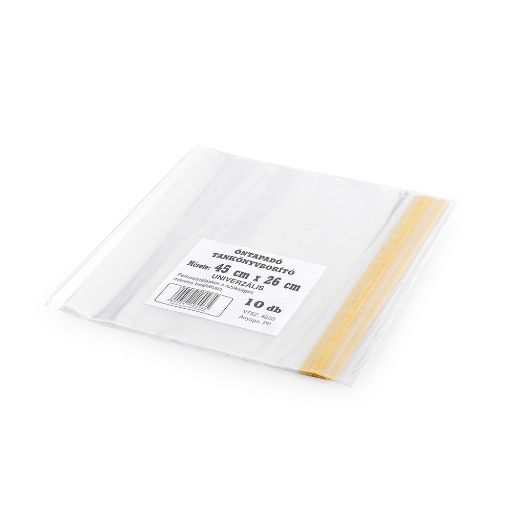 Tankönyvborító, füzetborító öntapadó ragasztócsíkkal A5 45x26cm, 10 db/csomag, víztiszta