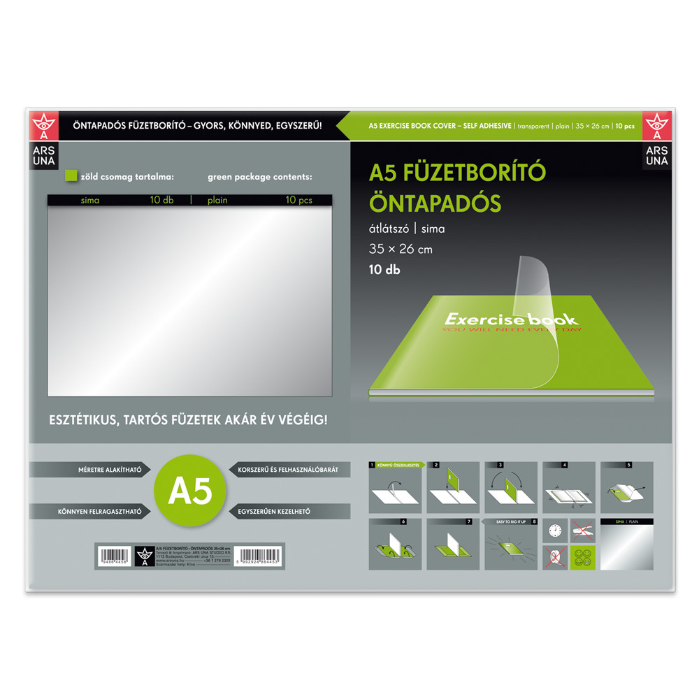 FÜZETBORÍTÓ ÖNTAPADÓ, A5 35X26CM, 10 ÍV/CSOMAG, Ars Una, VÍZTISZTA