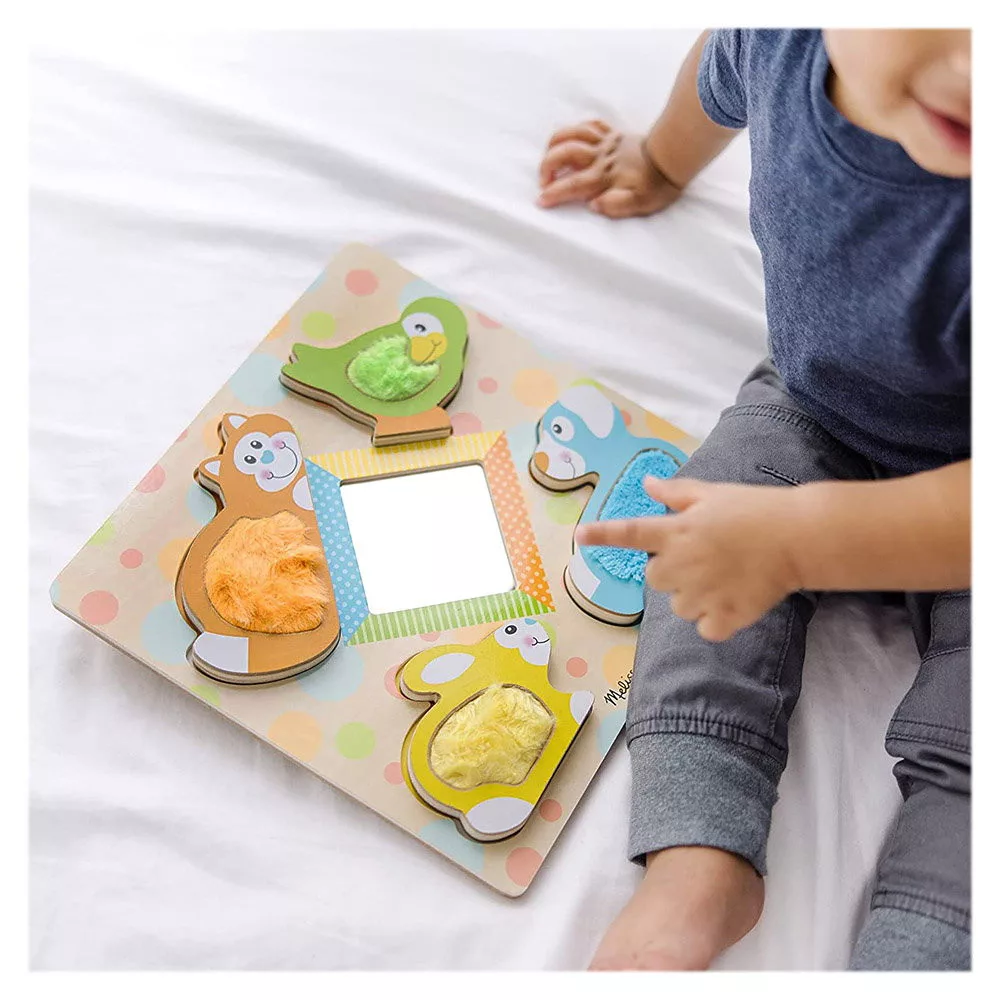 • A puzzle közepén egy tükör található a babáknak, amelyben magukat nézegethetik, segítve az önelemzést és az önismeretet.