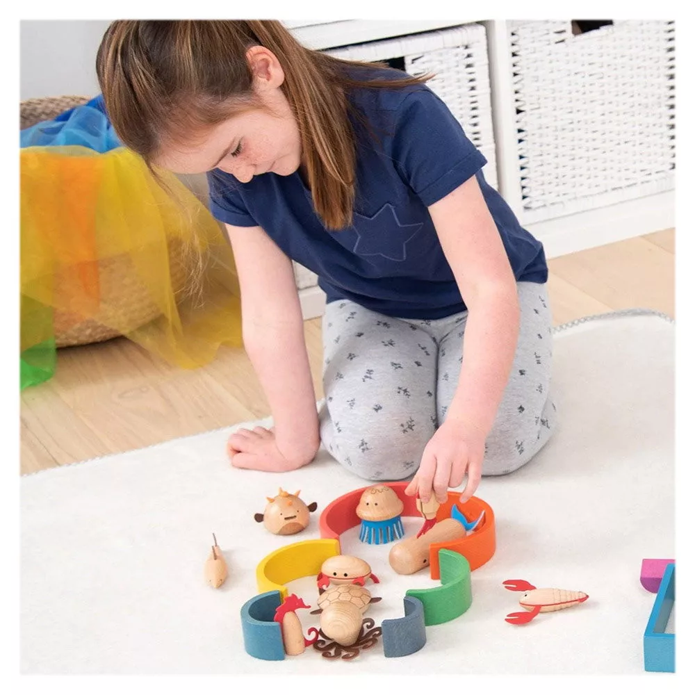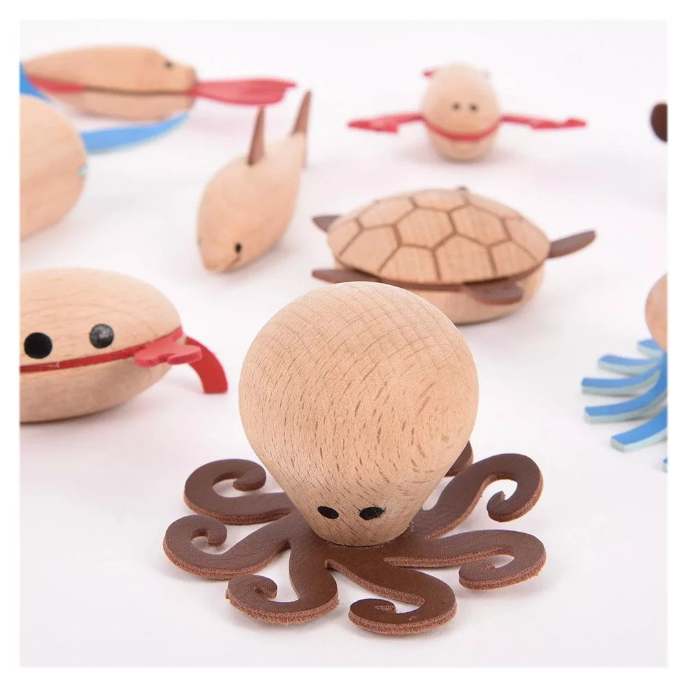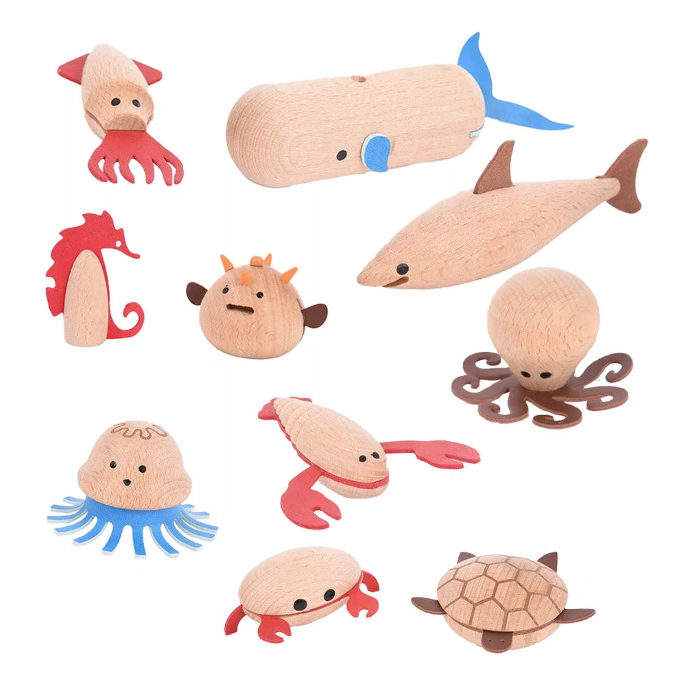 • A gyerekek örömmel használhatják a kis fából készült tengeri lényeket fantáziadús játékokban, miniatűr világok létrehozásában és történetek elmesélésére, fejlesztve képzelőerejüket, kreativitásukat, leíró nyelvi készségeiket, finommotoros és szenzoros készségeiket.