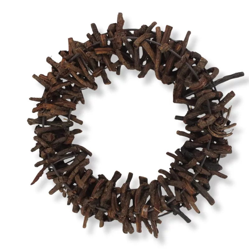 Fém váz alapú, csavart ágas-tövises koszorú. Extravagáns és látványos koszorúalap, ami könnyedén díszíthető és beleillik a tavasztól őszig tartó összes szezonális dekorációba.