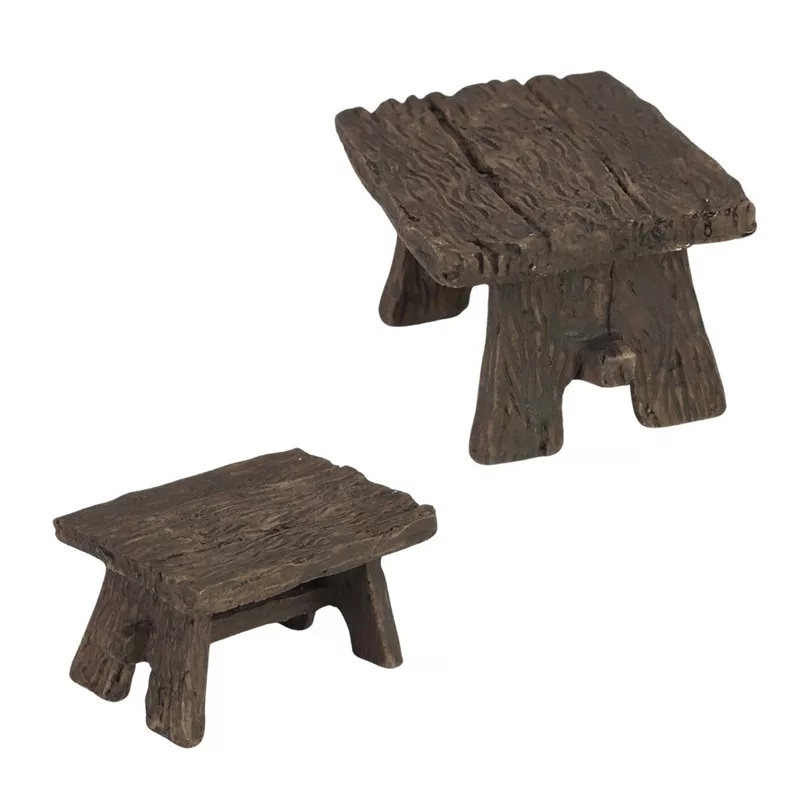 Mini asztal tündérkerti dekorációba, részletes kidolgozottsággal. Fa hatást keltő megjelenés, amely tökéletesen illik természetes környezetekbe. Ideális kiegészítő tündérkertekhez, mini kertekhez vagy babaházakhoz. Tartós anyagból készült, hogy ellenálljon az időjárás viszontagságainak. Hozz létre varázslatos jeleneteket és adj egyedi hangulatot kertednek ezzel a bájos mini asztallal.