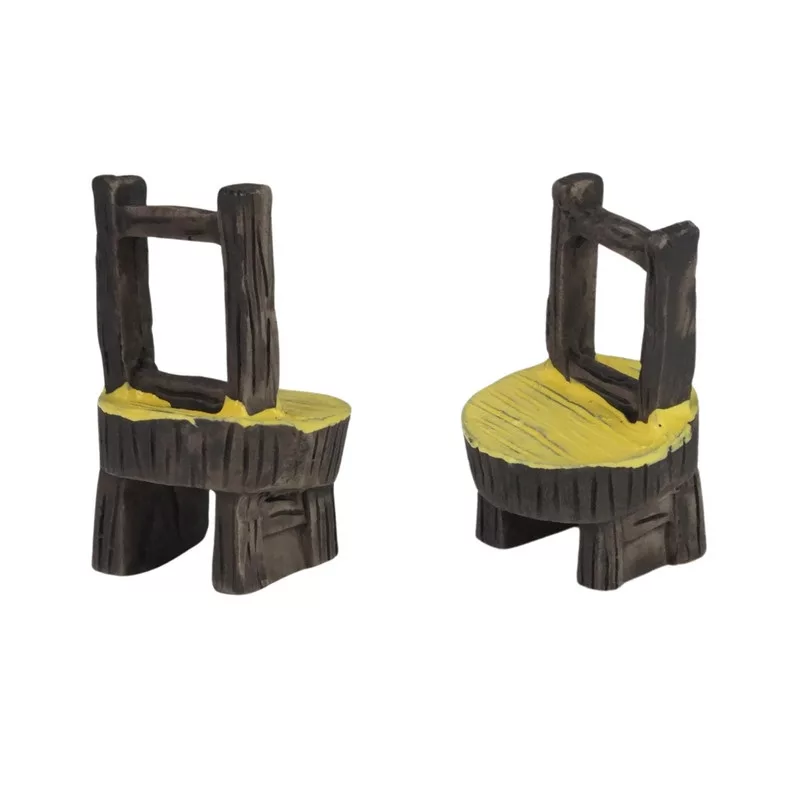 Mini székek tündérkerti dekorációba, részletes kidolgozottsággal. Fa hatást keltő megjelenés, amely tökéletesen illik természetes környezetekbe. Ideális kiegészítő tündérkertekhez, mini kertekhez vagy babaházakhoz. Tartós anyagból készült, hogy ellenálljon az időjárás viszontagságainak. Hozz létre varázslatos jeleneteket és adj egyedi hangulatot kertednek ezekkel a bájos mini székekkel.