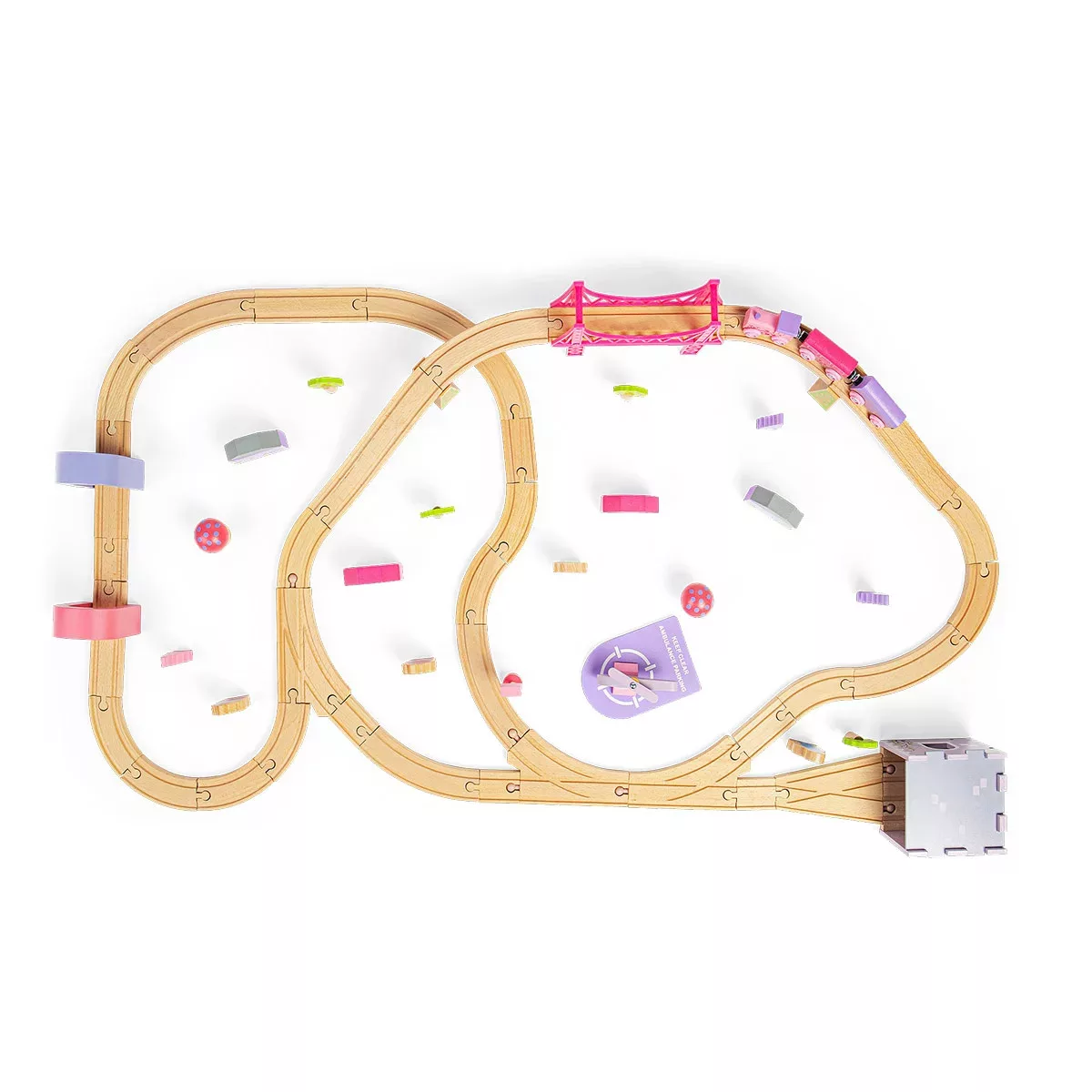 A készlet FSC® tanúsítvánnyal rendelkező fa anyagból készült, amely nem csak tartós, hanem környezetbarát is. A vonatsíneket könnyű összekapcsolni más fa vasútkészletekkel, így bővíthető játékbeli kalandokhoz.
