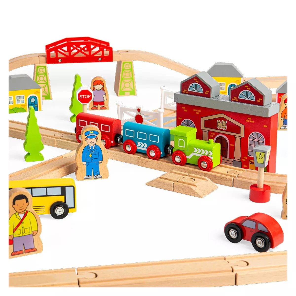 A szett lehetővé teszi, hogy a gyerekek elindítsák vonatukat a nyüzsgő városi állomástól, áthaladjanak a vidéki tájon át egészen a folyó vagy erdő mellett futó vasútvonalig – így izgalmas kalandokat alkothatnak minden játékalkalommal.