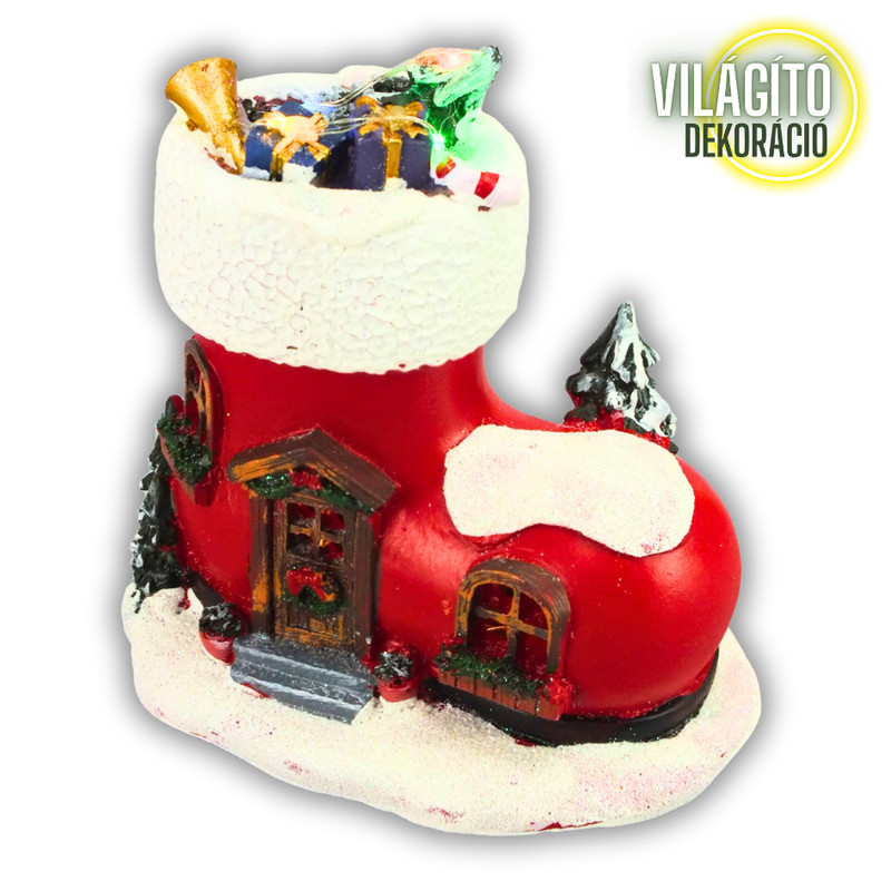Világítós karácsonyi csizma ház - LED-es téli dekoráció