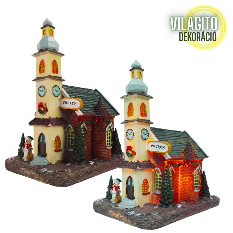 Igazi ünnepi hangulatot hozó templomi dekoráció, amely ragyogást visz az ünnepi időszakba. Belső világítása az éjszakai sötétben kellemes fényerővel világít.